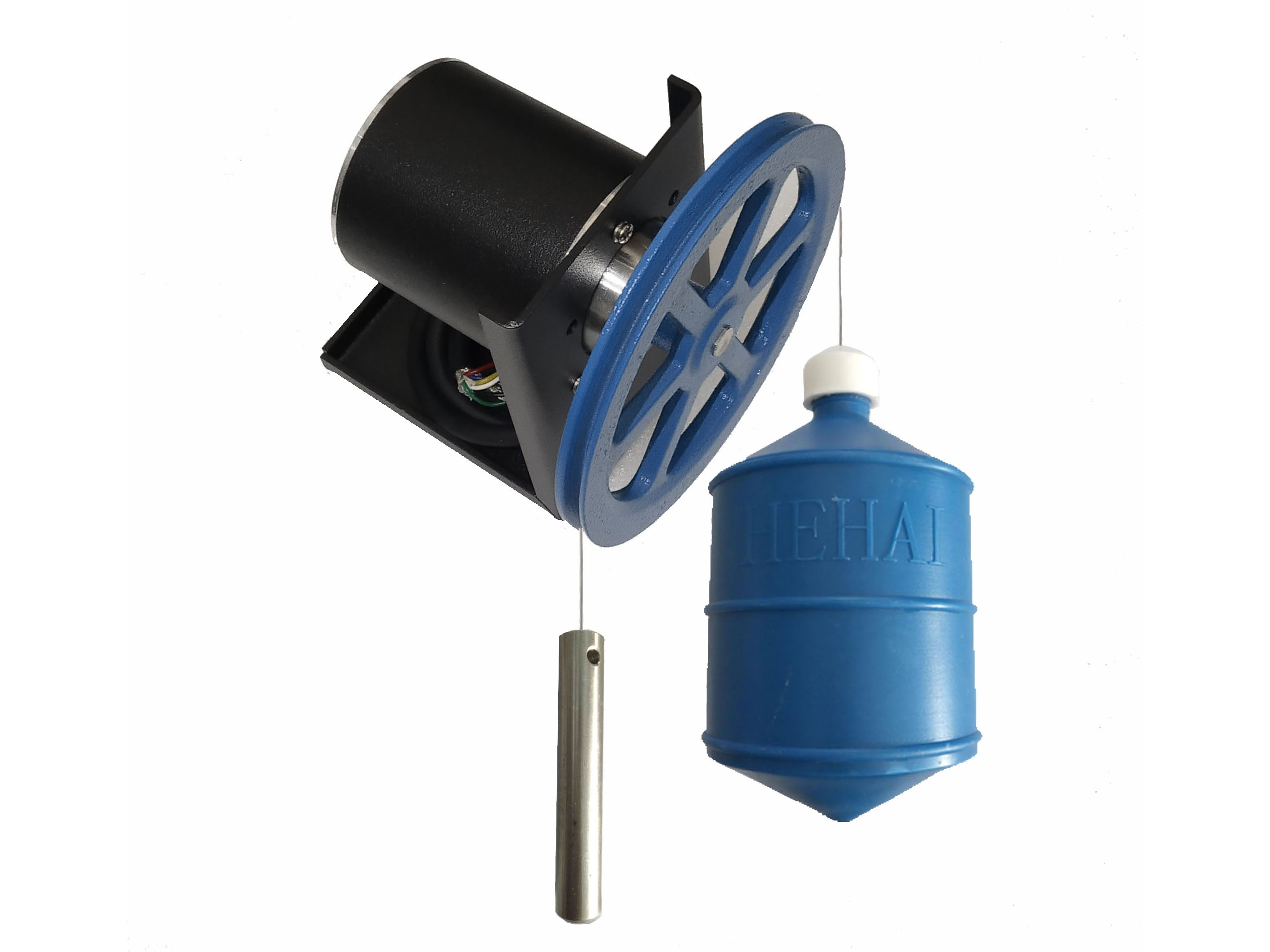 HSW型浮子式水位計,選用光電式系列、接觸式系列或數顯系列編碼器,以精密的變速機構、線輪、不銹鋼絲繩、 重錘、防浪錘和浮子等構成。該傳感器安裝在測井口或測管上 方,當液位變化時,浮子隨之上升或下降,鋼絲繩便帶動線輪做 旋轉運動,與線輪同軸連接的編碼器就輸出與液位對應的數字 信號送至智能測控儀,從而達到了對液位的實時測量與顯示的 目的。該傳感器結構合理,抗干擾能力強,分辨率高,量程大, 壽命長,有掉電后信號跟蹤記憶功能,它能夠長期用于液位測 量并能保證性能的穩定可靠,是江河湖泊、水庫、船閘、水電 站、水文站、水廠及石油化工等行業理想的液位傳感器。