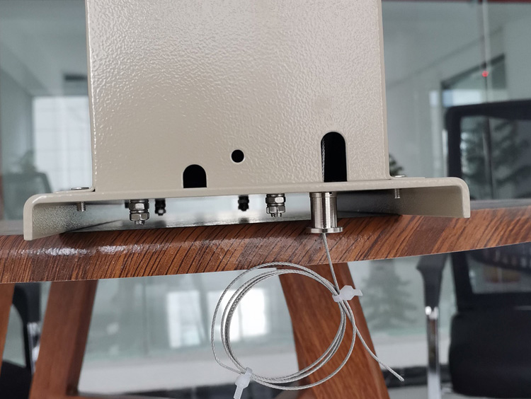 HZS-LX拉線式限位開關,從內部拉出一根鋼絲繩與被測閘門直接聯結,閘門提升或下降時鋼絲繩帶動內部與測輪聯動的凸輪軸旋轉,凸輪轉動到達指定位置(根據現場事先調試好位置)會觸動限位開關,來控制閘門開啟、關閉的上、下限,從而達到了對被測閘門進行限位的目的。